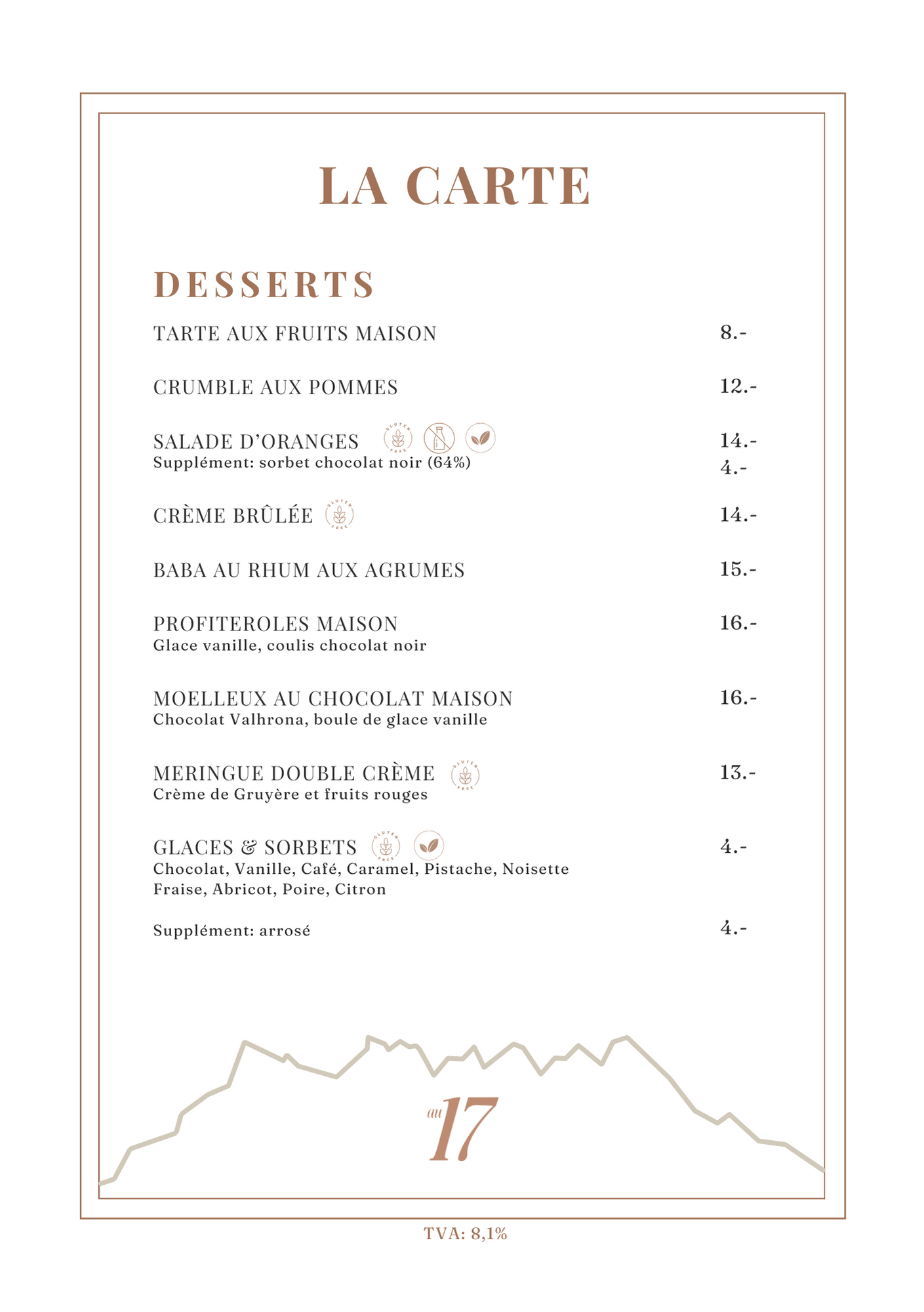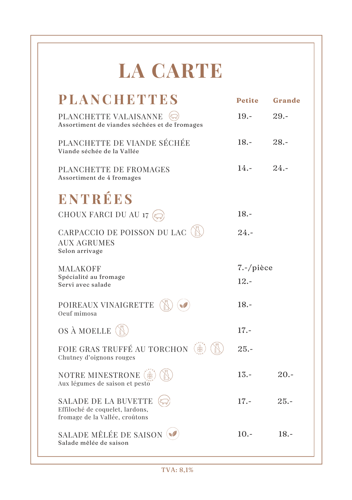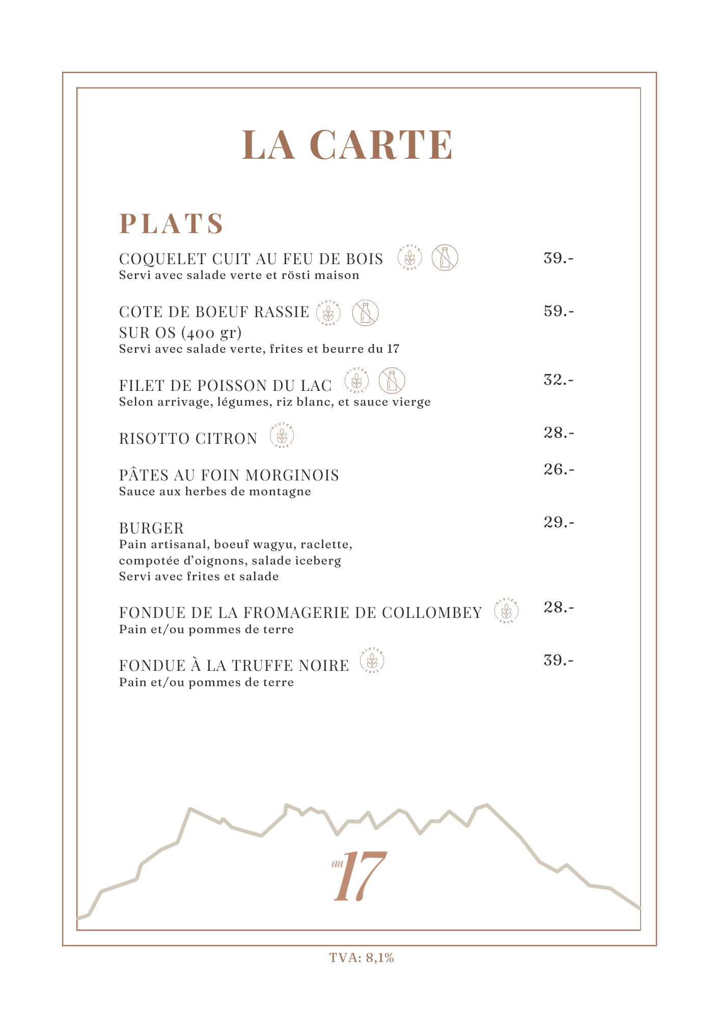 La carte du restaurant